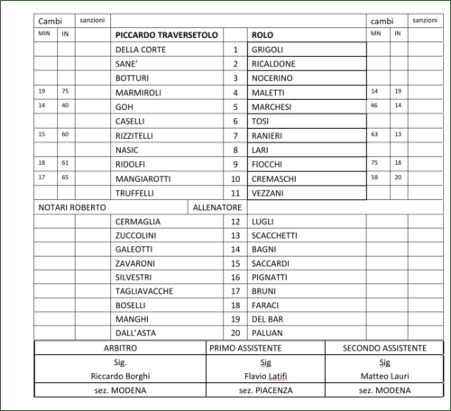 05/12/2021 - Partenza a razzo della Piccardo che in quindici minuti trova per tre volte il gol: al 5 minuto Truffelli trasforma in gol una maldestra respinta del giovane portiere Grigoli, che non valuta bene il rimbalzo di una sibillina punizione di Mangiarotti. Passano 2 minuti e lo stesso Mangiarotti dopo essersi liberato di un avversario scaglia un missile dai 25 metri che s’insacca sotto l’incrocio. Al 15 ripartenza fulminea di Marmiroli che premia l’inserimento di Nasic che entra in area e dopo aver messo a sedere il diretto avversario trafigge per la terza volta Grigoli con un preciso rasoterra. Al 16 altra occasione per i padroni di casa con Rizzitelli servito da Ridolfi ma il suo tiro a giro viene parato da Grigoli, al 24 ancora Piccardo con un tiro a giro di Marmiroli che termina fuori di poco. Al 25 prova a reagire il Rolo con un colpo di testa di Tosi che termina di poco. Il Rolo cerca di riaprire la partita e offre ampi spazi alle ripartenze della Piccardo che al 32 liberano Mangiarotti per un calcio di rigore in movimento ma il tiro del numero 10 termina incredibilmente sul fondo. Partita che ha poco da dire, immediatamente messa in cassaforte dalla Piccardo, trova il suo epilogo definitivo al 51 quando Rizzitelli segna il gol del definitivo 4-0 dopo una bella azione corale portata avanti da un incontenibile Truffelli.