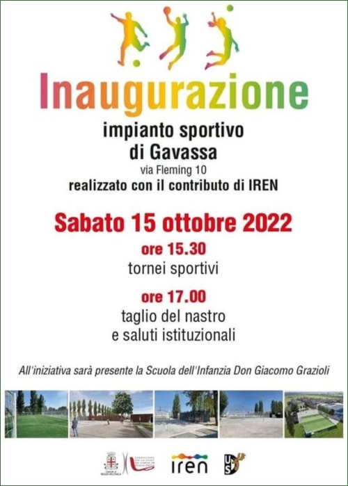 14/10/2022 - Alleghiamo locandina per Inaugurazione campo sportivo di Gavassa, Sabato 15 ottobre.