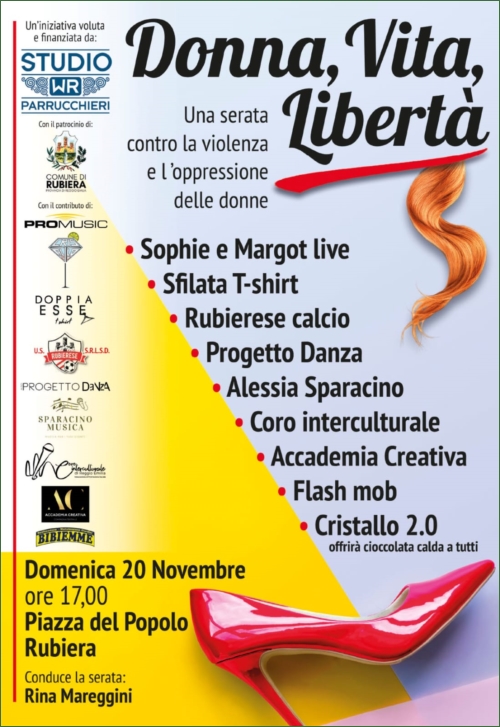 15/11/2022 - La Rubierese scende in campo contro la violenza sulle donne: domenica 20 novembre dalle ore 17 parteciperà alla serata Donna, Vita, Libertà condotta da Rina Mareggini e organizzata da WR Parrucchieri, che si terrà in piazza del popolo a Rubiera.