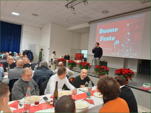 22/12/2022 - Martedì 20.12.22, cena dell’US Reggiolo Calcio, presenti in 350. Un successo la tradizionale cena sociale organizzata dell’US Reggiolo Calcio per lo scambio degli auguri delle Festività. Presso la Sala Polivalente “Nino Za” presenti 350 persone -200 atleti tesserati più 150 familiari- a conferma dell’importanza che ha assunto questo appuntamento voluto fortemente dalla dirigenza biancorossa, interrotto causa Covid nel 2020 e 2021. Al maxi incontro conviviale hanno partecipato tutti gli atleti dell’US Reggiolo Calcio, 200 tesserati -la prima squadra allenata da mister Raffaele Pizzo, la Juniores di Bertolini e Grossi, i Giovanissimi 2008 di Tramontano (allestita assieme ai ragazzi del Fabbrico), i Giovanissimi 2009 di Fava, gli Esordienti 2010 e ‘11 di Cutter, Andoni, Mesoraca, i Pulcini 2012 e ‘13 di Imparini, Zogno, Zanini, Primi Calci 2014 e ‘15 di Cuomo, Gallo, la Scuola Calcio 2016 e ‘17 di Bertolani, Gorrieri, con dirigenti, allenatori, accompagnatori e genitori. Il presidente Adone Bertazzoni ha spiegato i motivi alla base di questo appuntamento considerato molto importante dalla Società. “La serata, per noi, è diventata un tradizionale momento di ritrovo di tutti gli atleti, tecnici, collaboratori, familiari e una piacevole occasione per scambiarci gli auguri per le Feste natalizie”. Il Presidente Bertazzoni ha ringraziato il Sindaco Roberto Angeli che ha rimarcato l’importante ruolo della Società biancorossa nella gestione di tanti giovani locali. Molti gli applausi nel momento della presentazione -con sfilata sul palco per le foto- di tutte le formazioni con allenatori e accompagnatori partendo dai più piccini della Scuola Calcio arrivando alla Prima squadra di mister Raffaele Pizzo. Si sono divertiti tanto i ragazzini della Scuola Calcio che hanno cenato assistendo allo spettacolo del “Mago”e i suoi racconti. A fine cena tanti applausi per i volontari del Centro Sociale Nino Za per l’ottima cena servita: poi il sorteggio dei numeri vincenti i premi messi in palio dalla sottoscrizione interna. Chi non ha ritirato i premi può farlo rivolgendosi presso la sede di via Rinaldi.