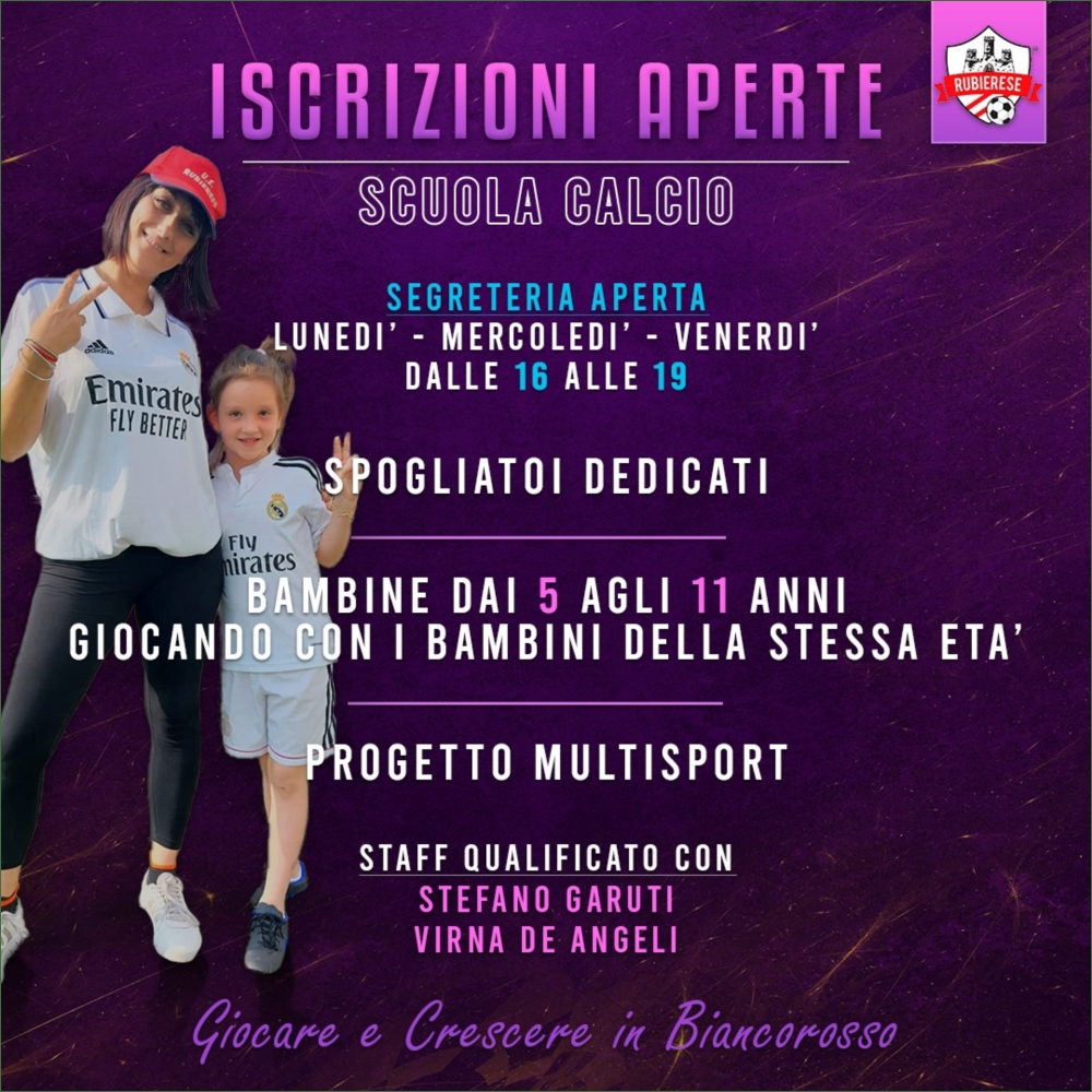 10/08/2023 - Una bellissima novità: da quest’anno tutte le bambine dai 5 agli 11 anni che vorranno giocare a calcio saranno accolte nelle nostre squadre, dove potranno iniziare un bellissimo percorso sportivo, insieme ai bambini loro coetanei, disponendo di spogliatoi dedicati e potendo contare sulle grandi competenze del nostro staff tecnico e sul confort delle strutture all’avanguardia del nostro centro sportivo, arricchito da un nuovo campo in erba sintetico. Rinnoviamo quindi l’invito a tutte le bambine e le ragazze interessante ad iniziare a giocare a calcio, con la possibilità di svolgere un periodo di prova antecede alla formalizzazione dell’iscrizione. Nel mese di settembre è inoltre in fase di organizzazione un open day dedicato a tutte le bambine interessate.