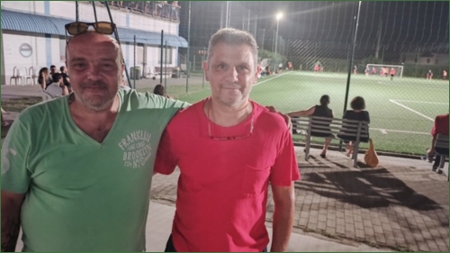 Foto: Il vice presidente della Bassa Parmense Tito Cofano e il presidente Iofre Azzali ritratti davanti allo splendido sintetico di Trecasali