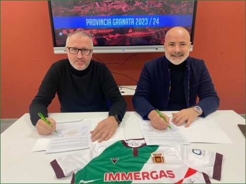 FOTO E DIDA: Il Montecchio entra a far parte di Provincia Granata: qui la firma fra il presidente Massimiliano Palmia e il vice presidente granata Giuseppe Fico.