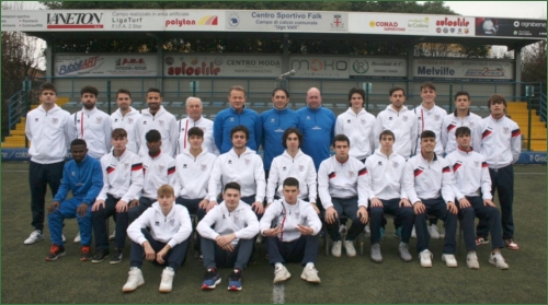 FOTO E DIDA: La prima squadra della FalkGalileo guidata da mister Emiliano Genitoni (al centro della foto), che domenica, al Campioli, affronerà la capolista Rubierese.