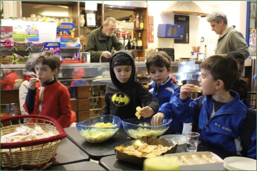 FOTO E DIDA: Alcuni ragazzini dell'Astra che, oltre all'allenamento speciale, in maschera, si sono concessi anche una gradita merenda