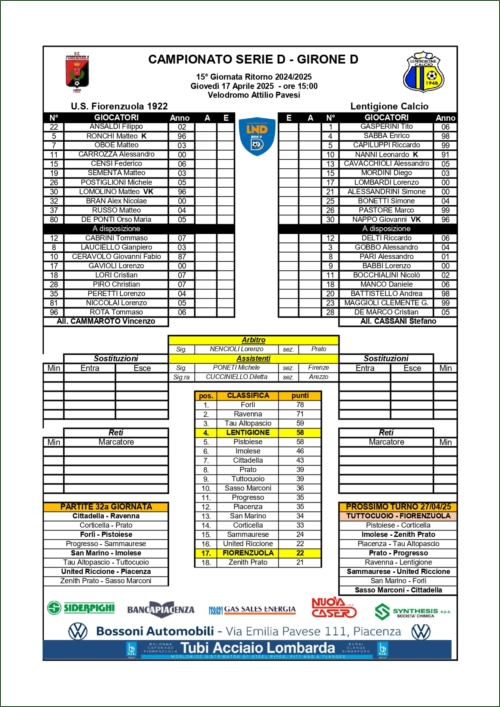 Tabellini Partite
