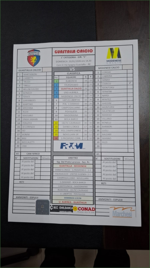 GUASTALLA CALCIO SATURNO-MODENESE: 4-2