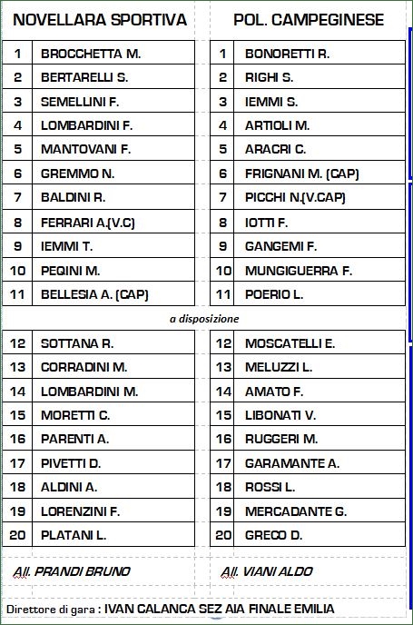 NOVELLARA SPORTIVA-POL. CAMPEGINESE: 2-1