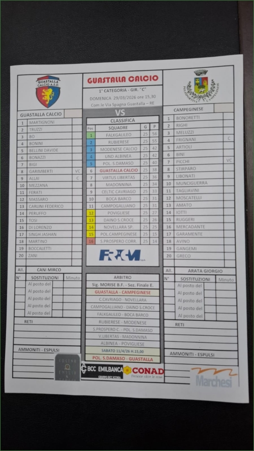 GUASTALLA CALCIO SATURNO-POL. CAMPEGINESE: 3-1