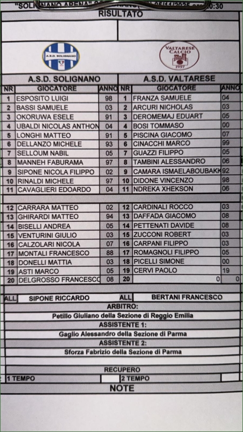 SOLIGNANO (PR)-VALTARESE: 3-0