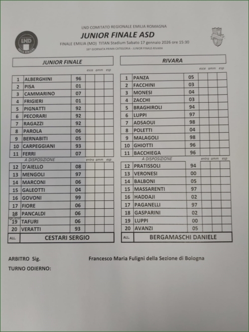 JUNIOR FINALE-RIVARA: 1-2