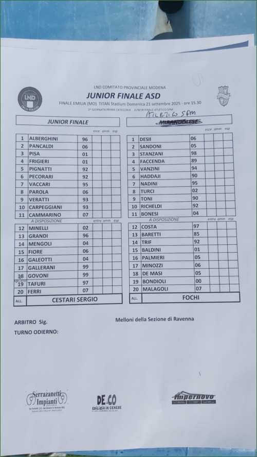 JUNIOR FINALE-ATLETICO SPM CALCIO: 0-2
