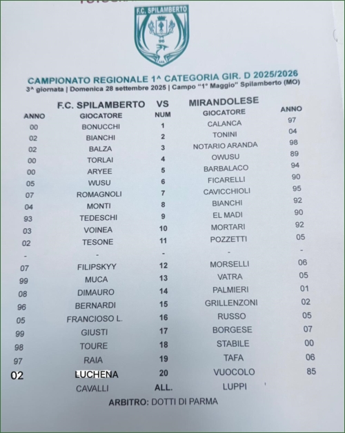 SPILAMBERTO-MIRANDOLESE FOLGORE CLUB: 0-2