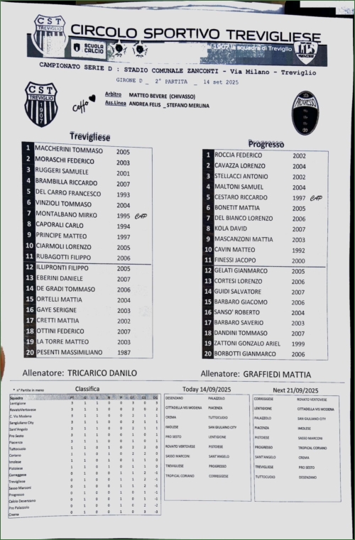 TREVIGLIESE-PROGRESSO: 4-3