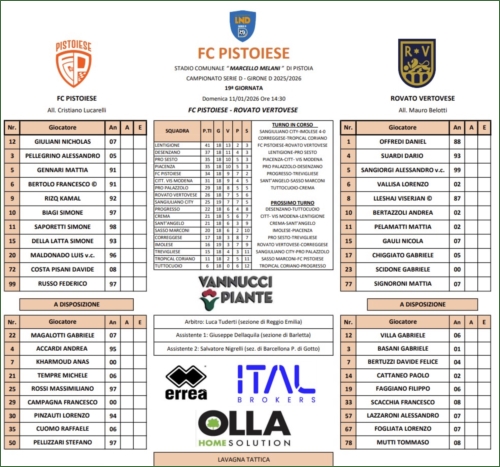 PISTOIESE-ROVATO VERTOVESE: 2-0