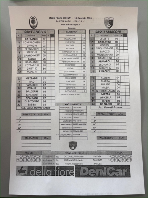 SANT'ANGELO-SASSO MARCONI: 0-0