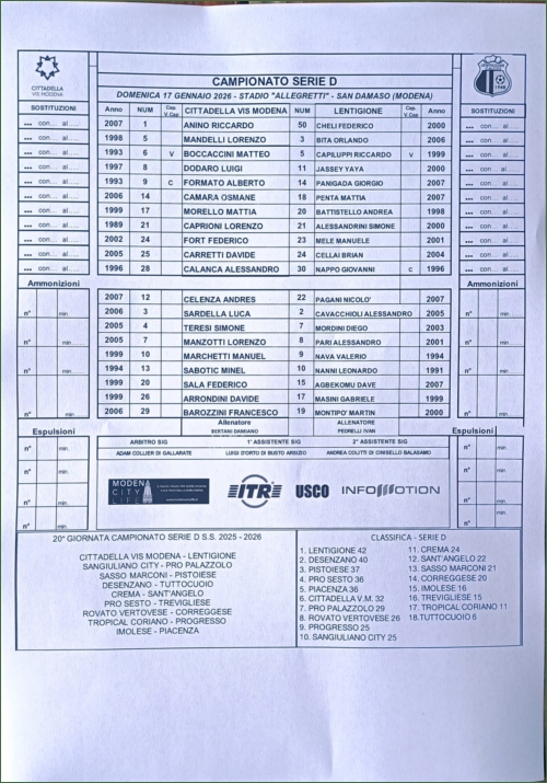 CITTADELLA VIS MODENA-LENTIGIONE: 0-1