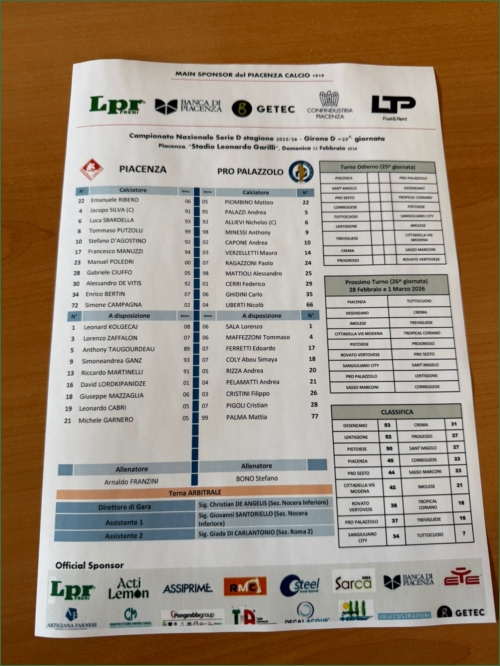 PIACENZA-PRO PALAZZOLO: 0-1