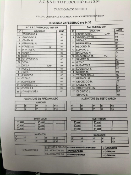 TUTTOCUOIO-SANGIULIANO CITY: 0-1