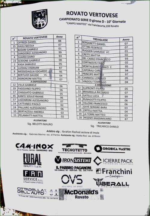 ROVATO VERTOVESE-TREVIGLIESE: 2-1