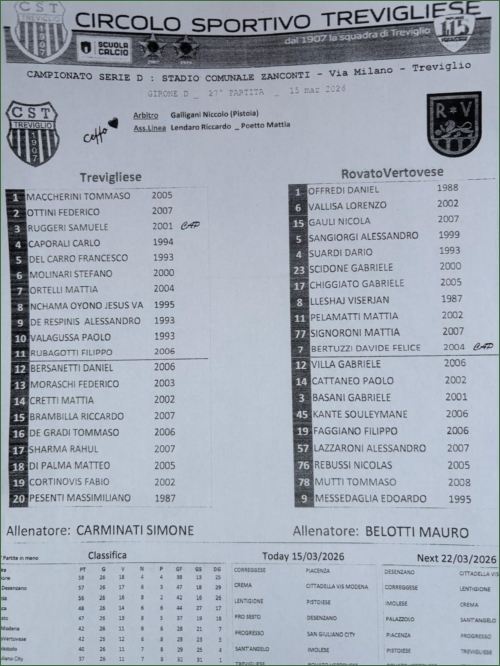 TREVIGLIESE-ROVATO VERTOVESE: 1-1