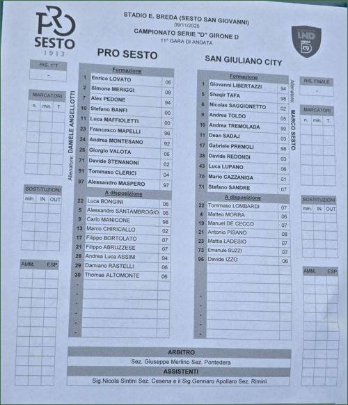 PRO SESTO-SANGIULIANO CITY: 0-0