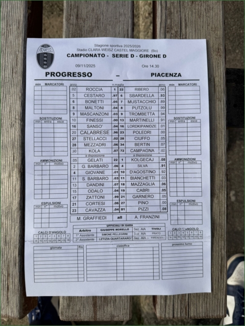 PROGRESSO-PIACENZA: 1-1