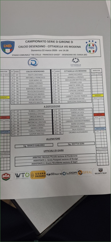 DESENZANO-CITTADELLA VIS MODENA: 1-0