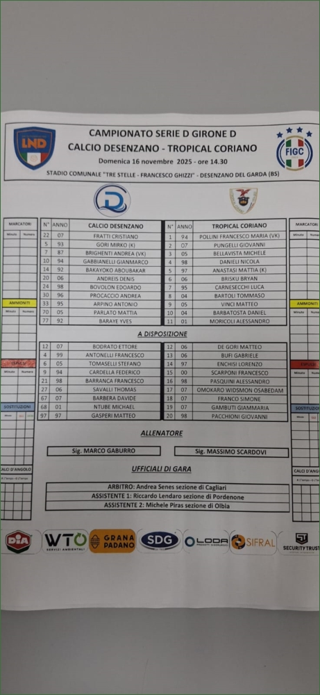 DESENZANO-TROPICAL CORIANO: 2-0