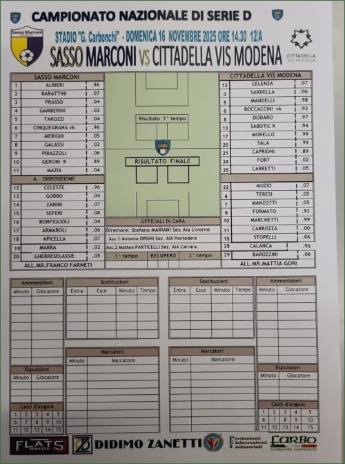 SASSO MARCONI-CITTADELLA VIS MODENA: 0-0