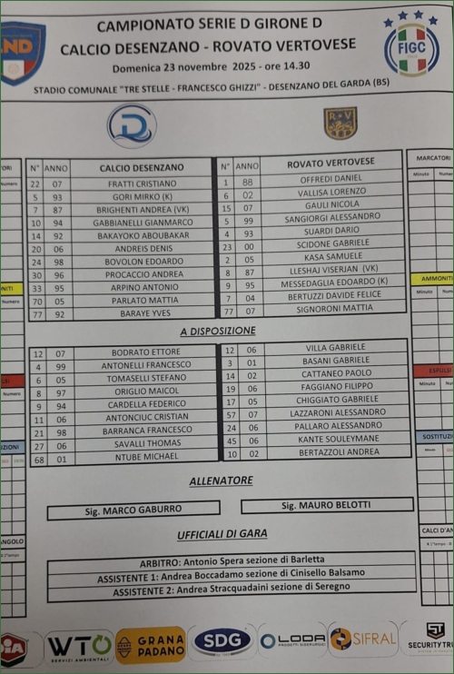 DESENZANO-ROVATO VERTOVESE: 3-0