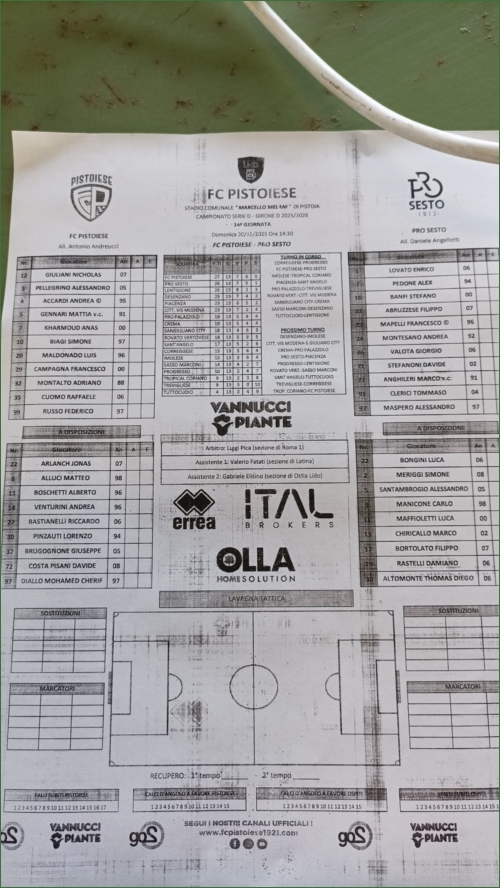 PISTOIESE-PRO SESTO: 0-2