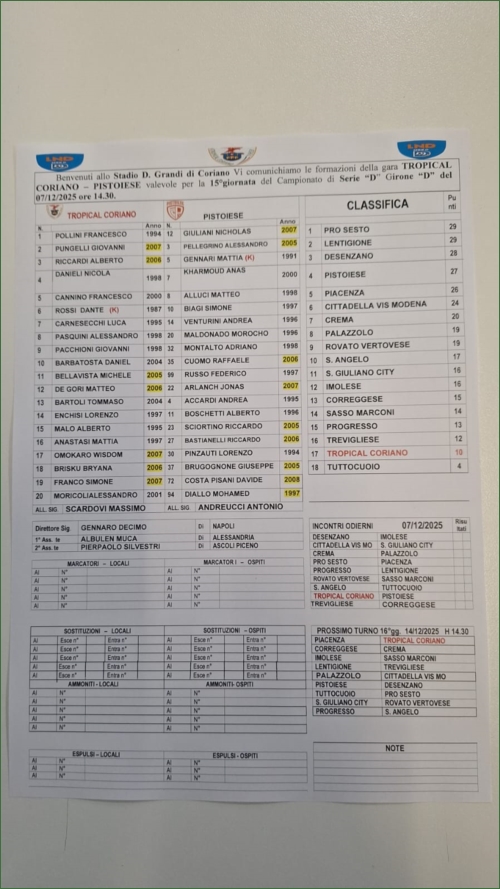TROPICAL CORIANO-PISTOIESE: 0-1