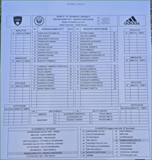 SANGIULIANO CITY-ROVATO VERTOVESE: 1-0