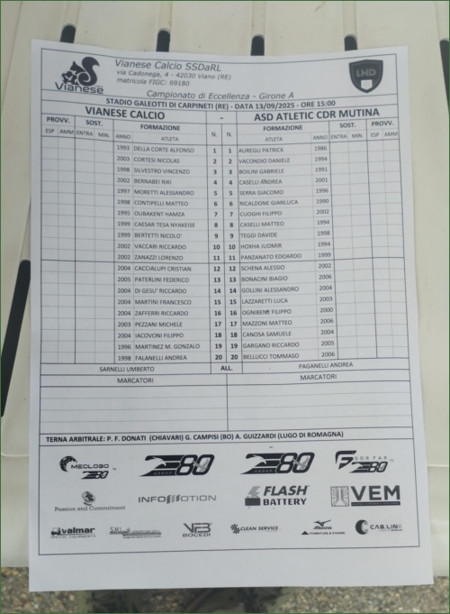 VIANESE-ATLETIC C.D.R. MUTINA: 2-0