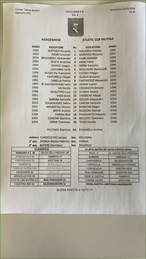 AGAZZANESE-ATLETIC C.D.R. MUTINA: 0-1