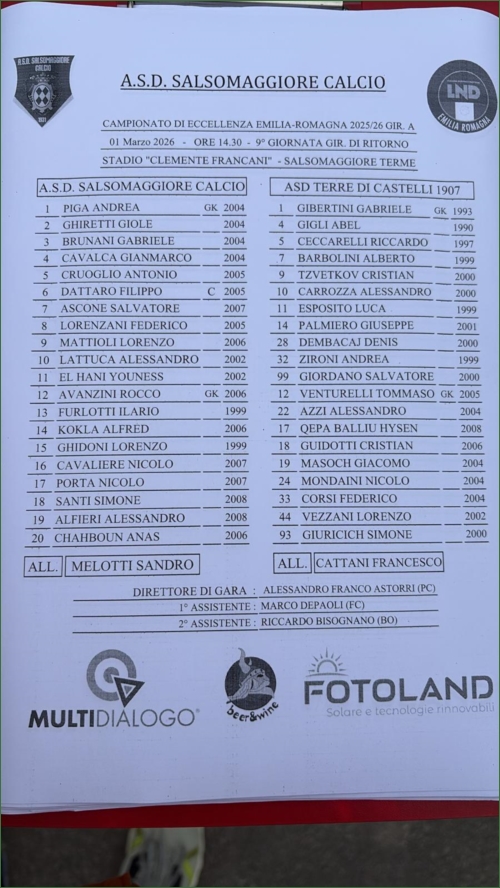 SALSOMAGGIORE -TERRE DI CASTELLI 1907: 0-5