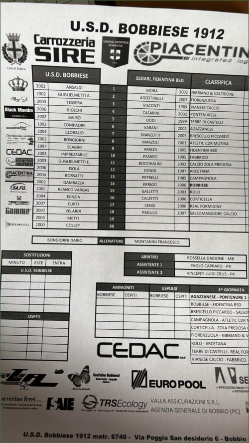 BOBBIESE-FIDENTINA BORGO SAN DONNINO: 3-0