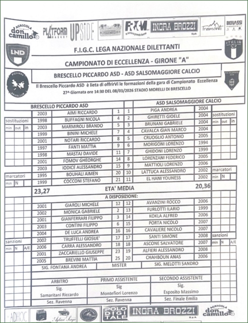 BRESCELLO PICCARDO-SALSOMAGGIORE : 2-0
