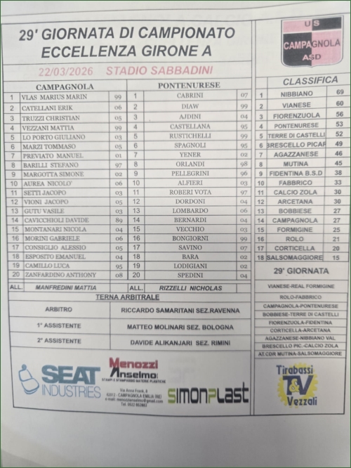 CAMPAGNOLA-PONTENURESE: 0-1