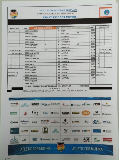 ATLETIC C.D.R. MUTINA-SALSOMAGGIORE : 2-0