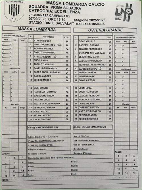 MASSA LOMBARDA-OSTERIA GRANDE: 1-1