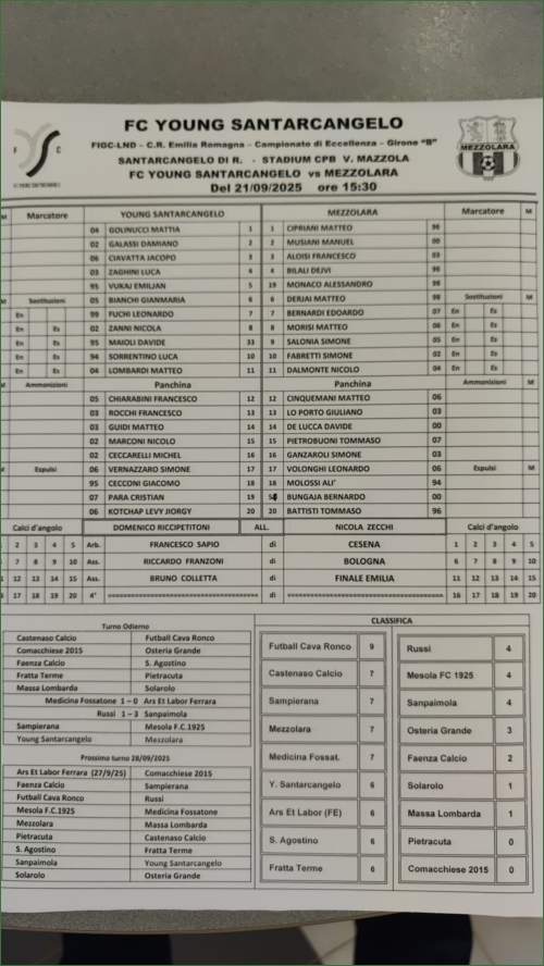YOUNG SANTARCANGELO-MEZZOLARA: 0-1