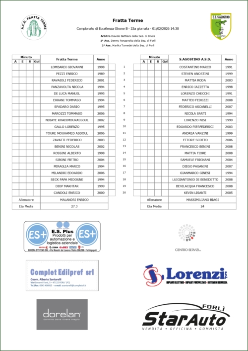 FRATTA TERME-SANT'AGOSTINO: 1-0