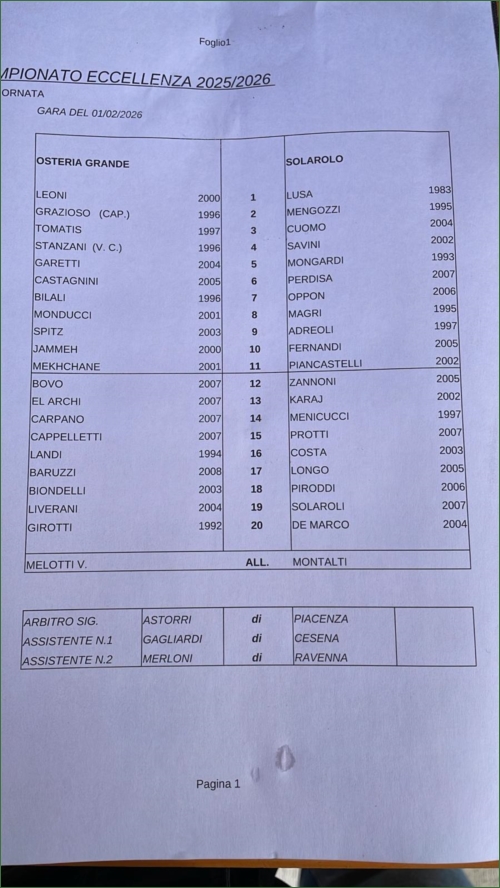 OSTERIA GRANDE-SOLAROLO: 1-0