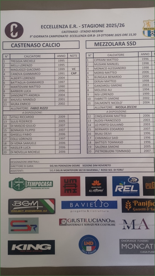 CASTENASO-MEZZOLARA: 1-3