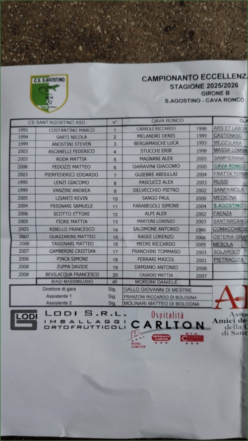 SANT'AGOSTINO-FUTBALL CAVA RONCO: 0-0