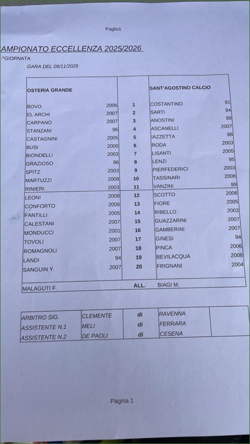 OSTERIA GRANDE-SANT'AGOSTINO: 1-0
