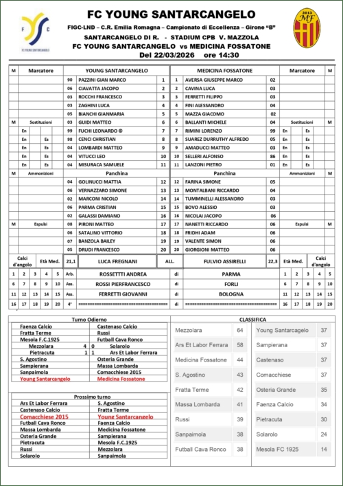 YOUNG SANTARCANGELO-MEDICINA FOSSATONE: 0-1