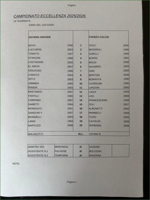 OSTERIA GRANDE-FAENZA: 0-2